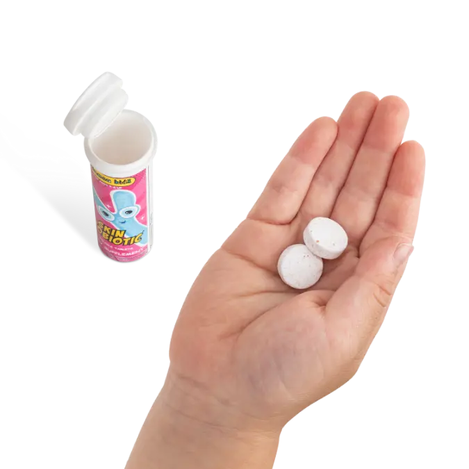 *The probiotic blend contained in Skinesa (1) JAMA Dermatol. 2018 Jan 1;154(1):37-43. doi: 10.1001/jamadermatol.2017.3647 (2) Acta Derm Venereol. 2019; doi:10.2340/00015555-3305